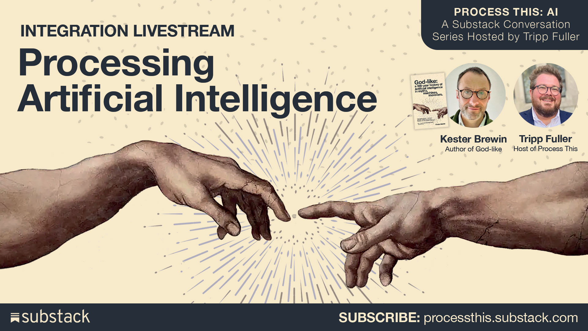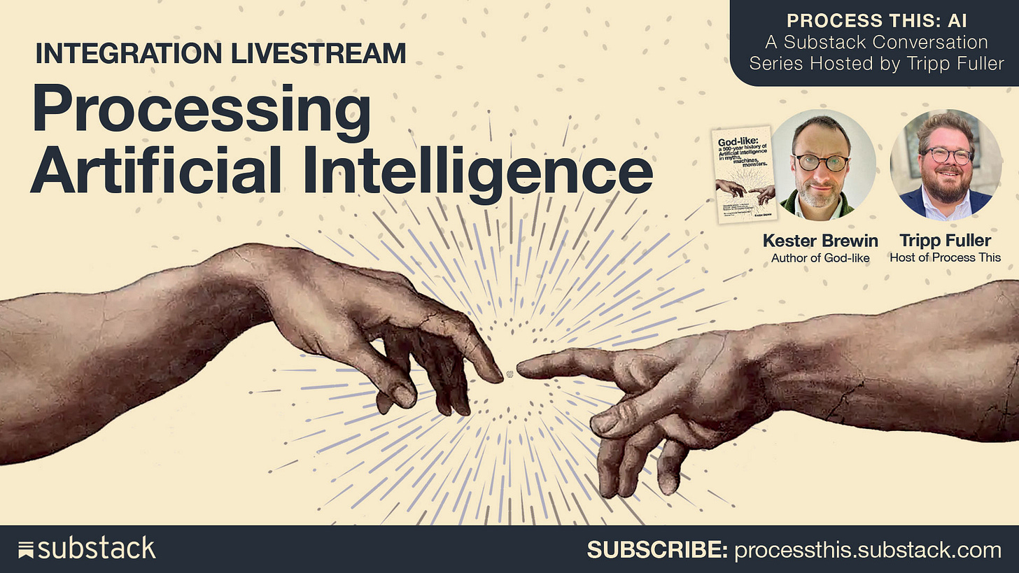 To get started, I’m hosting a conversation series on Artificial Intelligence with my friend Kester Brewin over the next couple of months, and our introduction livestream is on Wednesday, June 5th (10am PT / 1pm ET). Keep reading to learn more!