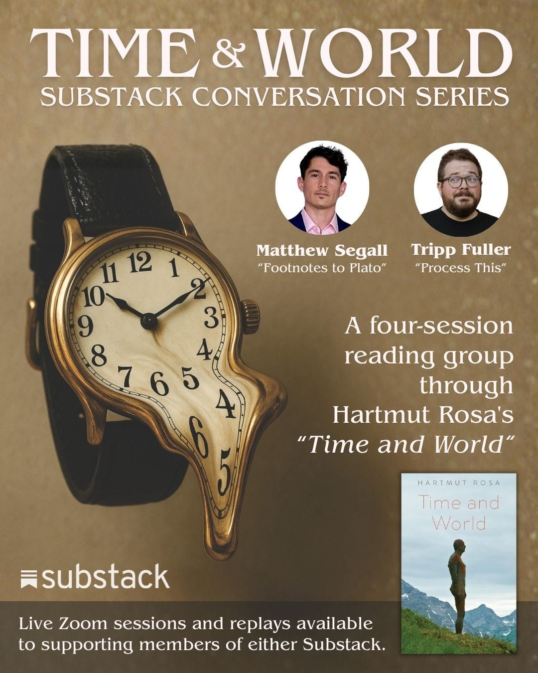 Dr. Matthew Segall (philosopher, author, host of Footnotes to Plato) and Dr. Tripp Fuller (Process This) are leading a four-session reading group through Rosa’s Time and World.